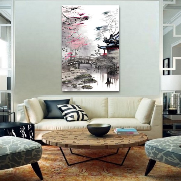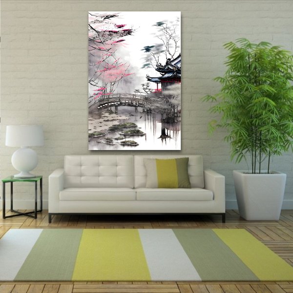 Японская живопись с имитацией водных чернил на рисовой бумаге. Выполняется с использованием современных технологий печати и ручной обработки. Заключительное лицевое покрытие из акрилового стекла придаёт картине невероятную выразительность, объём и защиту от внешнего воздействия.