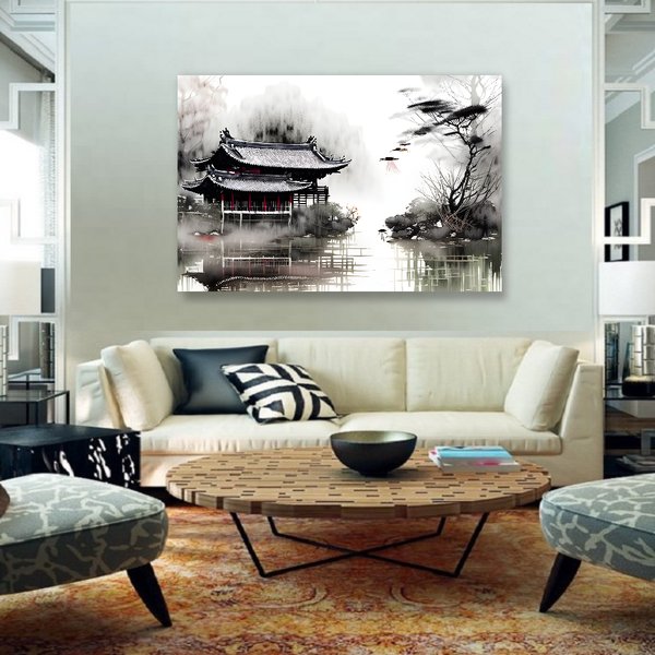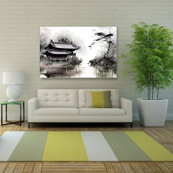 Японская живопись с имитацией водных чернил на рисовой бумаге. Выполняется с использованием современных технологий печати и ручной обработки. Заключительное лицевое покрытие из акрилового стекла придаёт картине невероятную выразительность, объём и защиту от внешнего воздействия.