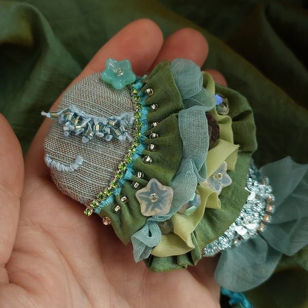 Брошь-булавка в виде волшебной рыбки в голубых и зелёных тонах с чумовыми ресничками. Сочетание разных материалов придаёт этой броши особый шарм.