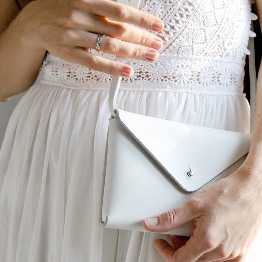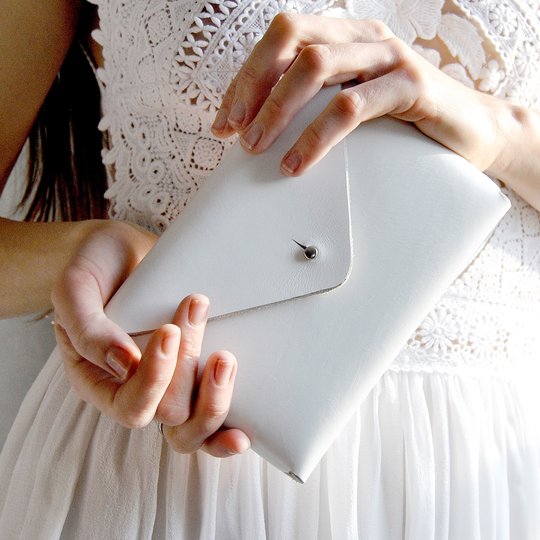 Клатч ручной работы из натуральной плотной мягкой кожи на кобурной кнопке. Цвет белый.