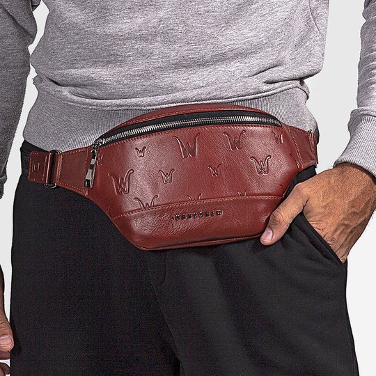 Стильный текстильный ремень с логотипом мастерской. Его длина рассчитана на то, чтобы носить сумку как на поясе, так и через плечо. Материал верха — натуральная кожа высокого качества. Подкладка из плотного текстиля (хлопок, полиэстер).