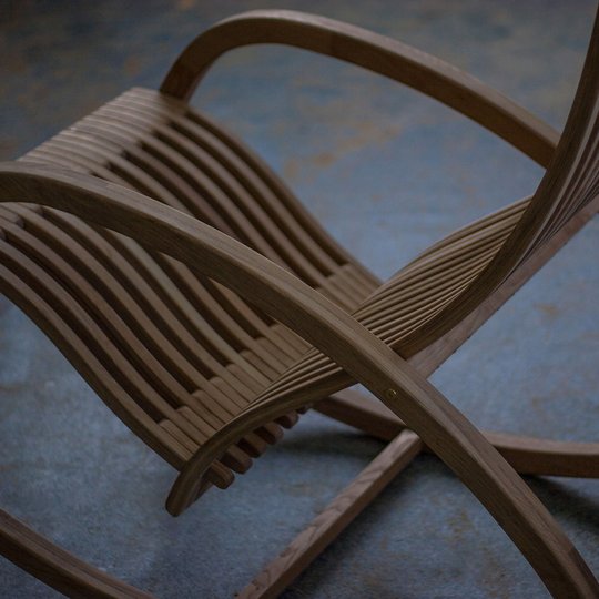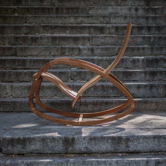 Кресло-качалка ручной работы, объединившее в себе современные формы, эстетику натурального дерева и комфорт.