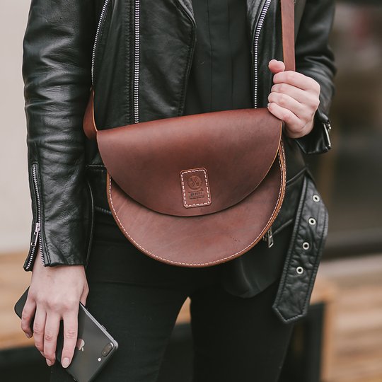 Женская сумочка ручной работы в форм-факторе кросс-боди. Выполнена из высококачественной итальянской кожи в модном сегодня формате "седло".
