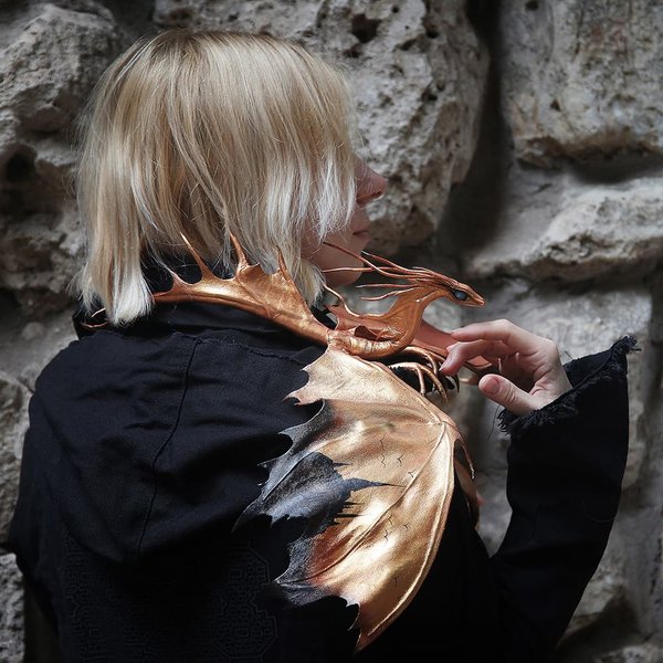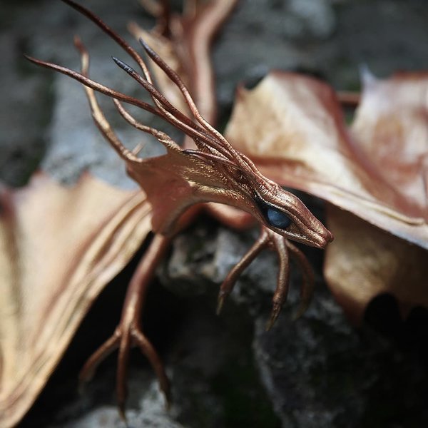 Уникальный дракон ручной работы. выполненный из натуральной кожи на гибком каркасе. Расписан также вручную акриловыми красками. Глаза — аквамарин, когти — серебро 925, позолота (мастерская Wiravens).