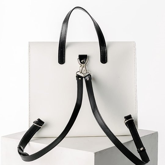 В комплекте: наплечный ремень длиной 130 см и две лямки рюкзака длиной по 70 см каждая, а также съёмная мини-сумочка на молнии из того же материала, что и портфель.