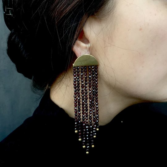 Позолоченные серьги ручной работы с бусинами натурального граната.