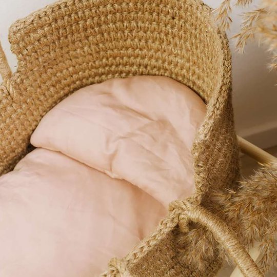 В комплекте матрасик и подушка из натурального хлопка нежного розового цвета.