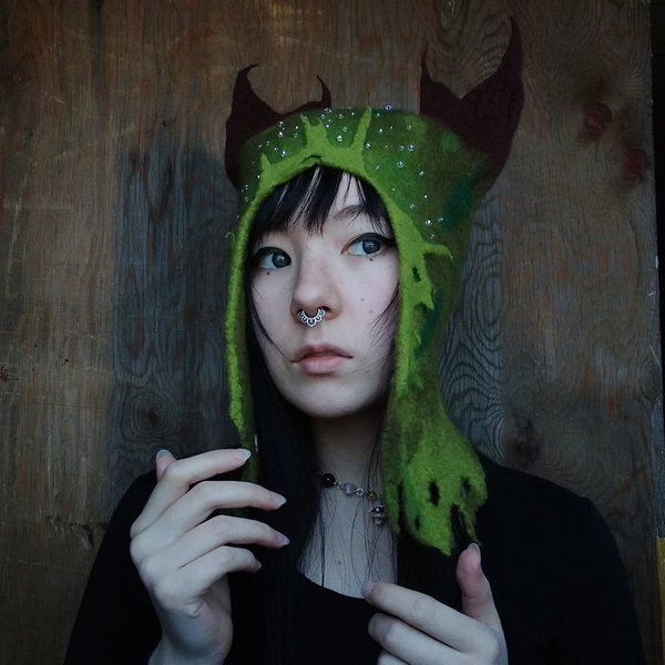 Авторская валяная шапка «Дриада» выполнена из шерсти австралийского мериноса в технике мокрого валяния. Расшита стеклянным бисером. Полностью ручная работа.