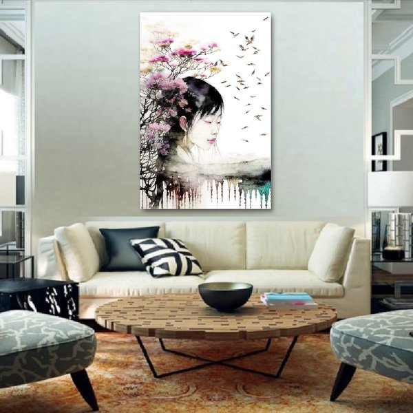 Японская живопись с имитацией водных чернил на рисовой бумаге. Выполняется с использованием современных технологий печати и ручной обработки. Заключительное лицевое покрытие из акрилового стекла придаёт картине невероятную выразительность, объём и защиту от внешнего воздействия.