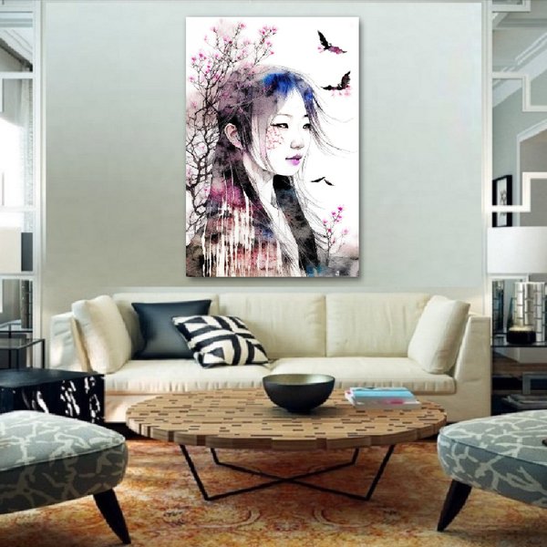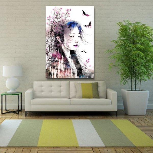 Японская живопись с имитацией водных чернил на рисовой бумаге. Выполняется с использованием современных технологий печати и ручной обработки. Заключительное лицевое покрытие из акрилового стекла придаёт картине невероятную выразительность, объём и защиту от внешнего воздействия.