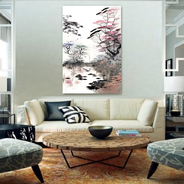 Японская живопись с имитацией водных чернил на рисовой бумаге. Выполняется с использованием современных технологий печати и ручной обработки. Заключительное лицевое покрытие из акрилового стекла придаёт картине невероятную выразительность, объём и защиту от внешнего воздействия.